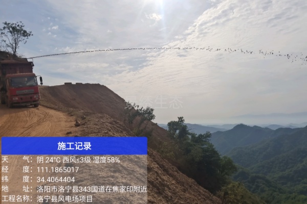 景绣生态洛宁风电生态修复工程坐落于洛阳洛宁罗岭乡等区域,涵盖风电设备安装、线路铺设及配套生态修复全流程,良好适配豫西山地地形特点。项目建设中,景绣生态摒弃传统施工模式,融合自主研发的生态海绵土壤成型技术,破解山地风电建设中的水土保持难题,提升植被存活率,实现工程建设与生态保护同步推进。