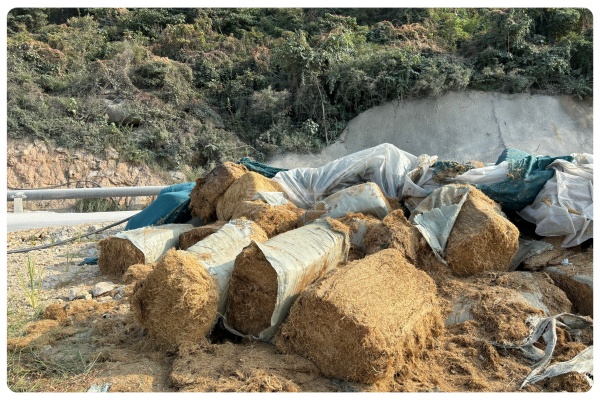 预处理是草纤维发挥效能的关键前提。施工前,景绣生态会对草纤维进行 “拆包 - 打散 - 筛选” 三步处理:先将压缩包装的草纤维完全拆封,避免整包投入导致喷播机堵塞;再用专用打散设备将纤维团分散成单丝状态,确保纤维间无直径超过 3cm 的结块;最后通过筛网筛选,去除杂质与过短纤维,保证纤维长度均匀。这一步可使后续喷播时,草纤维与水、粘合剂、种子的混合均匀度提升 40%,有效避免 “团状掉落” 或 “局部裸露” 问题。