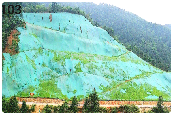 除了地质问题,地形条件同样严苛。边坡整体坡度超过 70° ,高度接近 100 米,属于典型的 “高陡边坡”。常规施工设备如小型喷播机,因射程有限、稳定性差,无法在如此陡峭的坡面上作业;施工人员也需借助攀爬设备上下,不仅效率低,还面临坠落风险。同时,超陡坡面导致喷播材料易受重力影响下滑,难以形成均匀覆盖层,如何让材料 “粘得住、留得下”,成为施工中的关键难点。