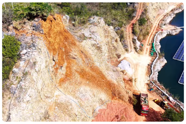 近日,景绣生态罗定生态修复工程迎来关键节点,崎岖不平的硬岩坡面正式进入客土喷播施工阶段,公司核心技术——纤维骨架生态海绵土壤成型技术同步落地应用,为陡峭硬岩坡面构建稳固生态基底,破解复杂地形生态修复难题。