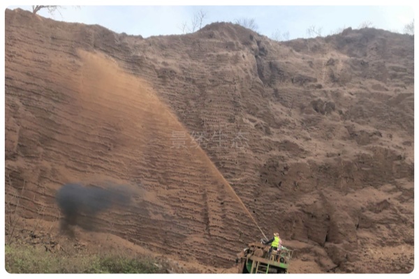 喷播施工环节,团队采用边坡绿化设备,通过高压泵将基质与种子的混合浆料以扇形喷射面均匀覆盖坡面,严格控制喷射距离在5-8米,确保基质与坡面粘结力达到0.8MPa的高标准,有效抵御夏季暴雨冲刷,避免基质与种子流失。目前,现场施工团队正严格按照技术规范推进喷播作业,每一个环节都力求准确可控,全力保障喷播效果。