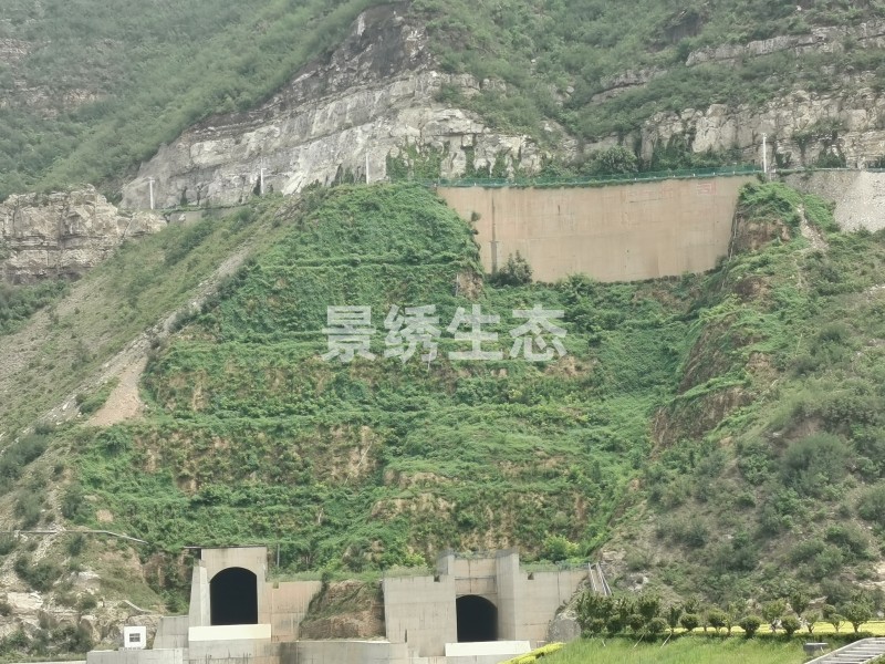 在边坡绿化施工中,高且陡的坡面为多数施工方的难题。由于坡度大,土壤容易流失,客土的附着力和后期养护为一大严峻挑战。景绣生态团队针对此方面难题,研发了“高陡边坡纤维骨架团粒结构修复技术”可有效解决坡面基质吸收水分困难的技术难题,大大提高了植物成活率。
